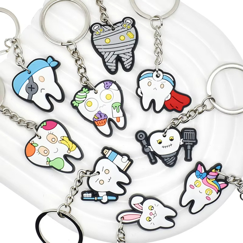 Oem מותאם אישית לוגו שן קריקטורה תליון תליון מברשת שיניים בריאות מפתחות חמוד רך 2d pvc